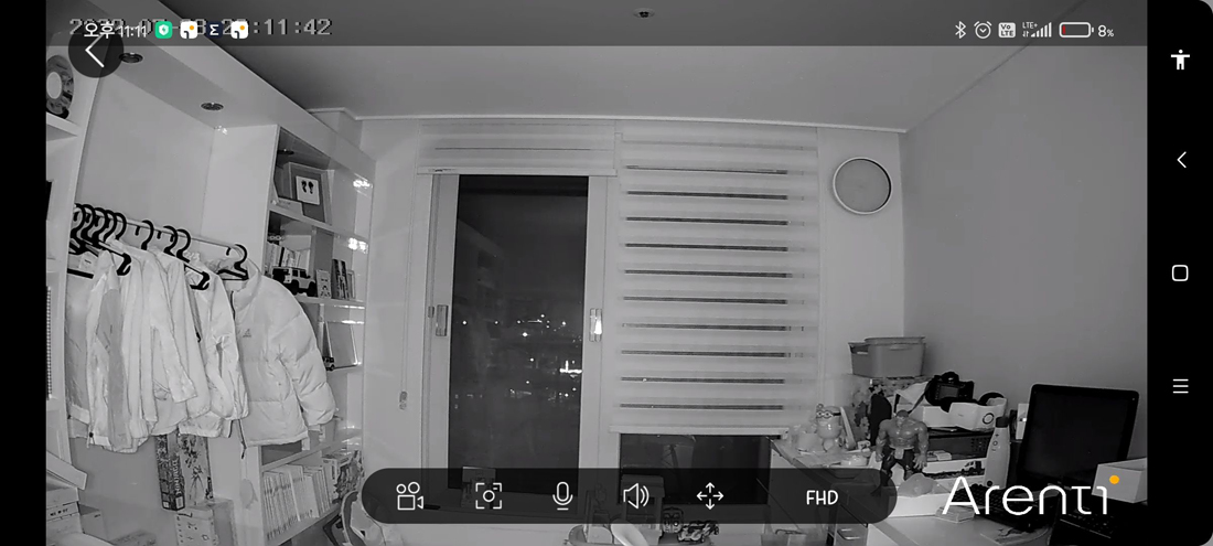 이번에는 아렌티 DOME1입니다. 락시허브 P2와 마찬가지로 영상이 흑백으로 전환됩니다. 어두운 곳도 걱정할 필요없이 CCTV 기능을 소화해낼 수 있을 것 같죠?