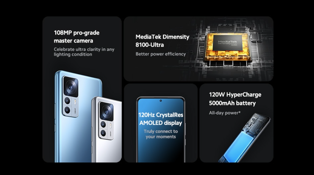 슬로건 문구에서도 알 수 있듯이 뛰어난 카메라 성능으로 순간을 소중하게 포착할 수 있는 제품입니다. 디자인도 깔끔한데요. 샤오미 12T 사양정보는 다음과 같습니다.