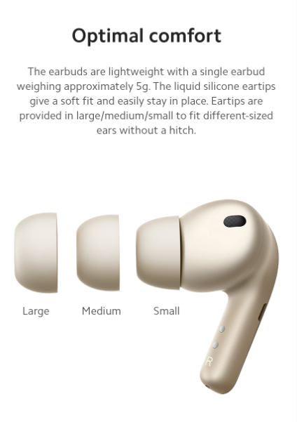 부드러운 LSR 재질의 이어팁은 3가지 사이즈가 있어, 본인에게 맞는 사이즈를 선택할 수 있고요. IP54 방진방수 기능이 탑재되어 있어 비가 오거나 운동할때 땀이 나도 고장 우려없이 사용 가능합니다.