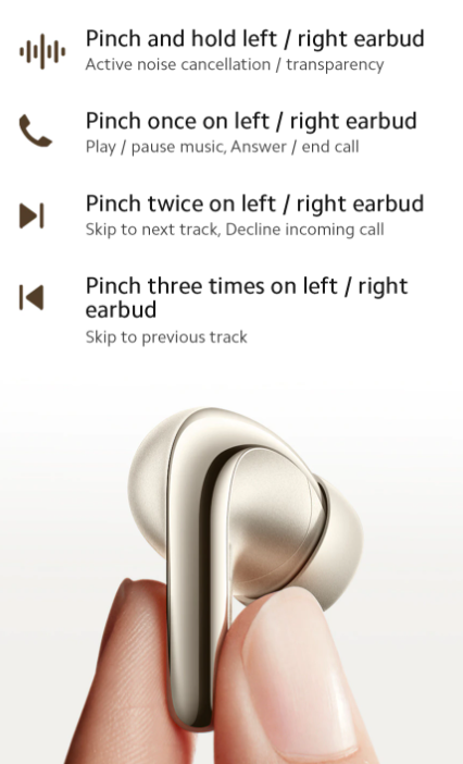 이어버드 터치 컨트롤도 지원해 간편하게 사용할 수 있는데, 컨트롤 모드는 다음과 같습니다.
