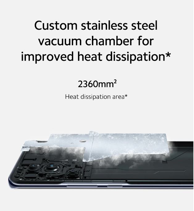 샤오미13 라이트는 열 분산을 위해 2360mm2 면적으로 스테인리스 스틸 진공 챔버를 채용했으며, 이로인해 발열을 최소화할 수 있습니다. 모바일 게임을 많이하거나 영상을 오래 보시는 분들에게 정말 도움이 되겠죠?