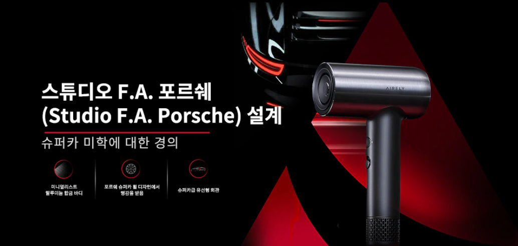 수카스 에어플라이 P1은 스튜디오 F.A. 포르쉐가 디자인한 제품입니다. 알루미늄 합금바디와 포르쉐 슈퍼카 휠디자인에서 영감을 얻은 디자인으로, 고급스러움까지 갖춘 헤어드라이기인데요.