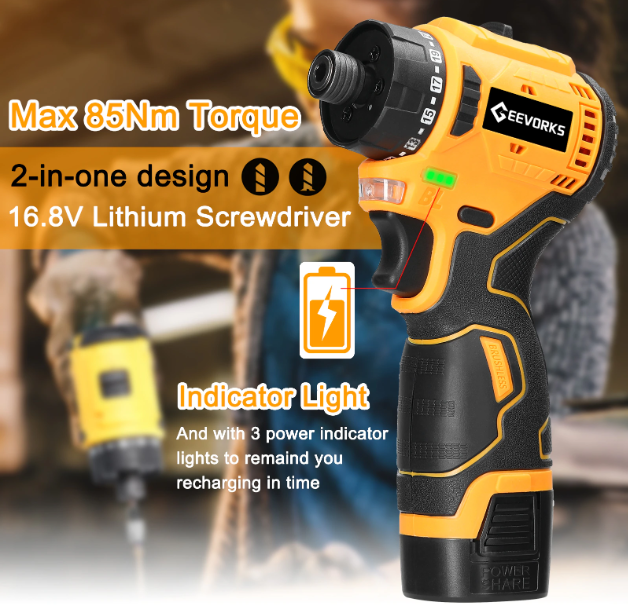 전동 드라이버 사용시 LED 작동등이 켜지기 때문에 어두운 곳에서 작업할때도 시야확보가 되어 편리하며, 3개의 인디게이터로 배터리 잔량도 쉽게 확인할 수 있어 편리하겠죠?