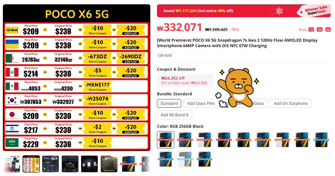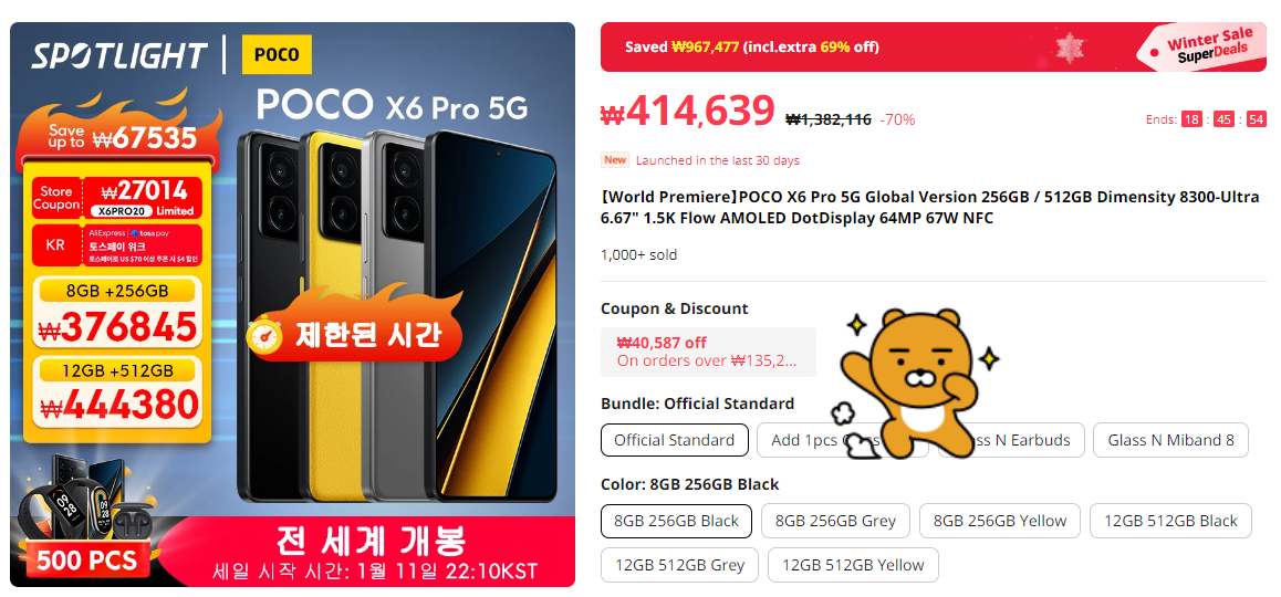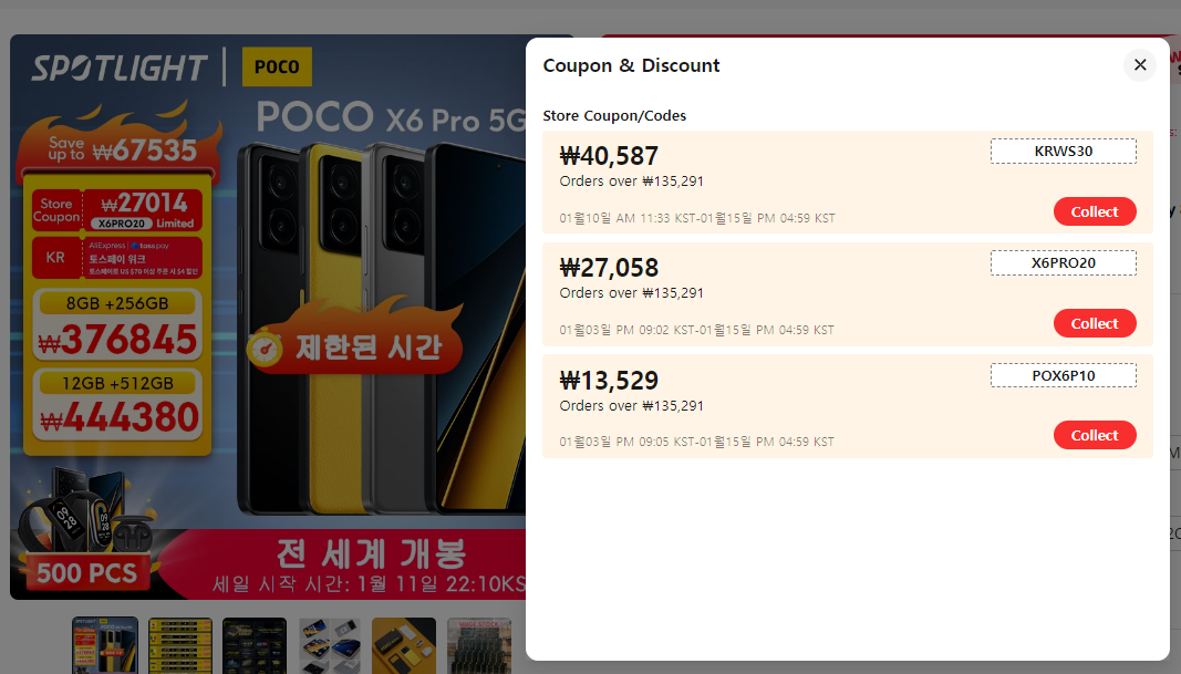 포코 X6도 출시기념으로 사전예약할인 이벤트가 진행중인데요. 현재 알리 공홈에서 33만원대에 구입이 가능하고요. 쿠폰까지 사용하면 더욱 저렴해집니다.