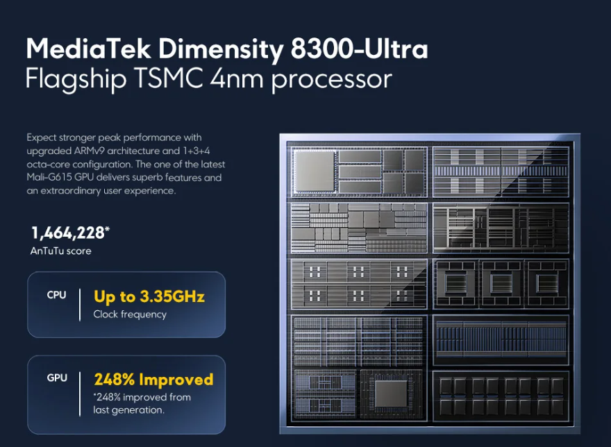 - 포코 X6 PRO: 미디어텍 디멘시티 8300 울트라