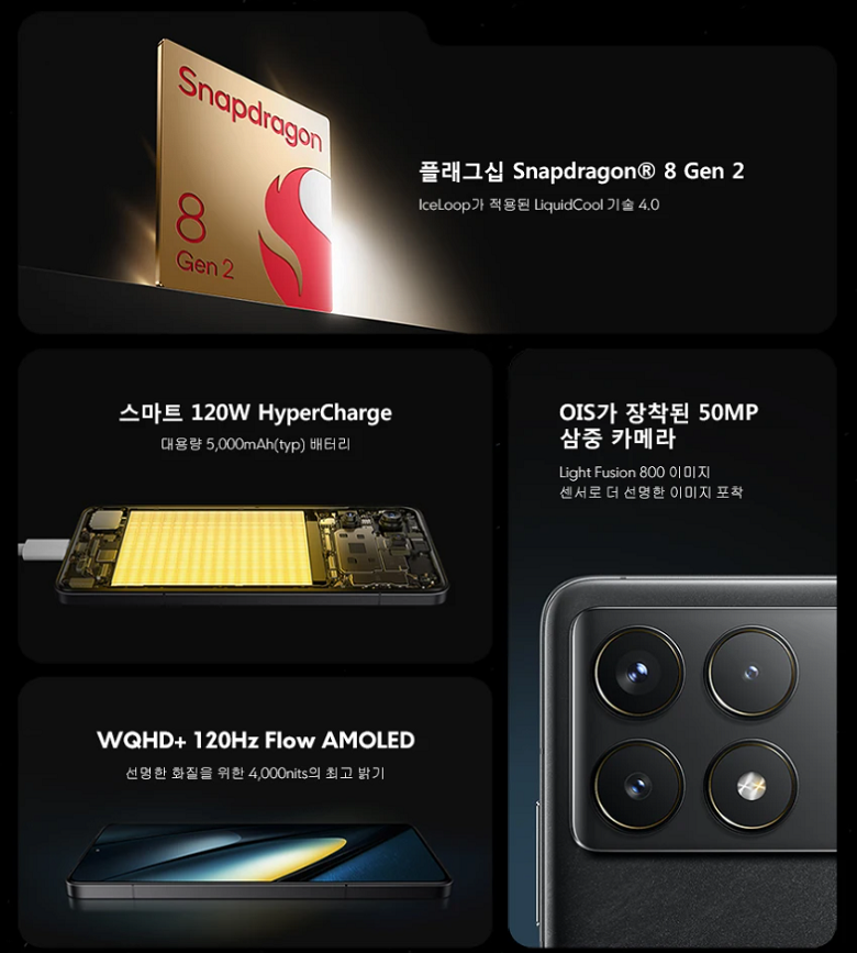 120W 하이퍼차지 기능도 있어 배터리 충전속도가 매우 빠르며, 손떨림 방지기능이 들어있는 트리플 카메라까지 매우 뛰어난 성능을 보여주고 있습니다.