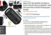 | [아마존 해외직구 핫딜] 니콘렌즈 NIKKOR 70-300mm f/4.5-6.3G ED VR Lens 번들킷 특가 (0) | 2017.11.13 |